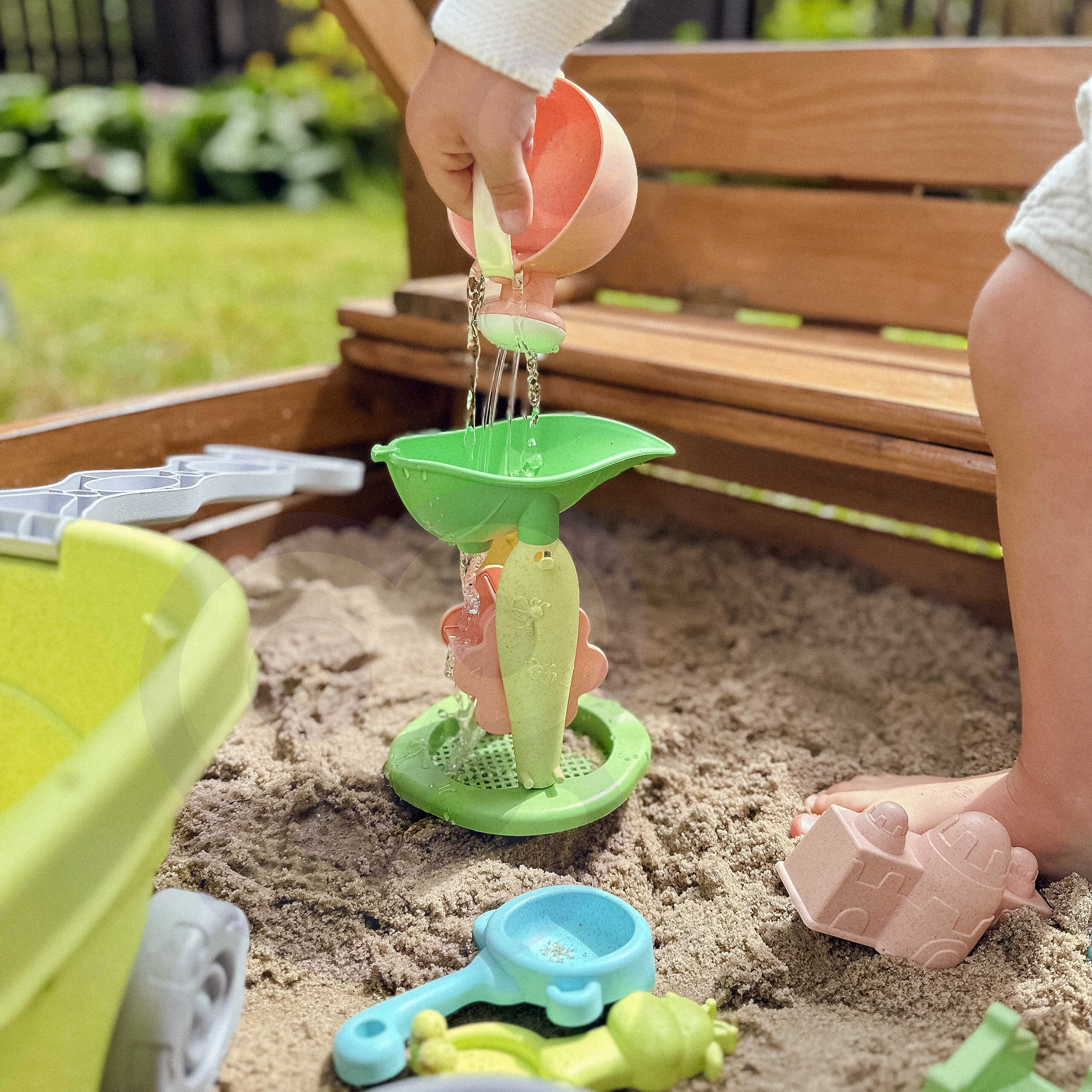 Öntse a homokot vagy a vizet a tölcsérbe, és figyelje, ahogy a kerekek megpördülnek. Az integrált szita segít megtisztítani a homokot, és szórakoztató kísérletezési elemmel gazdagítja a játékot.