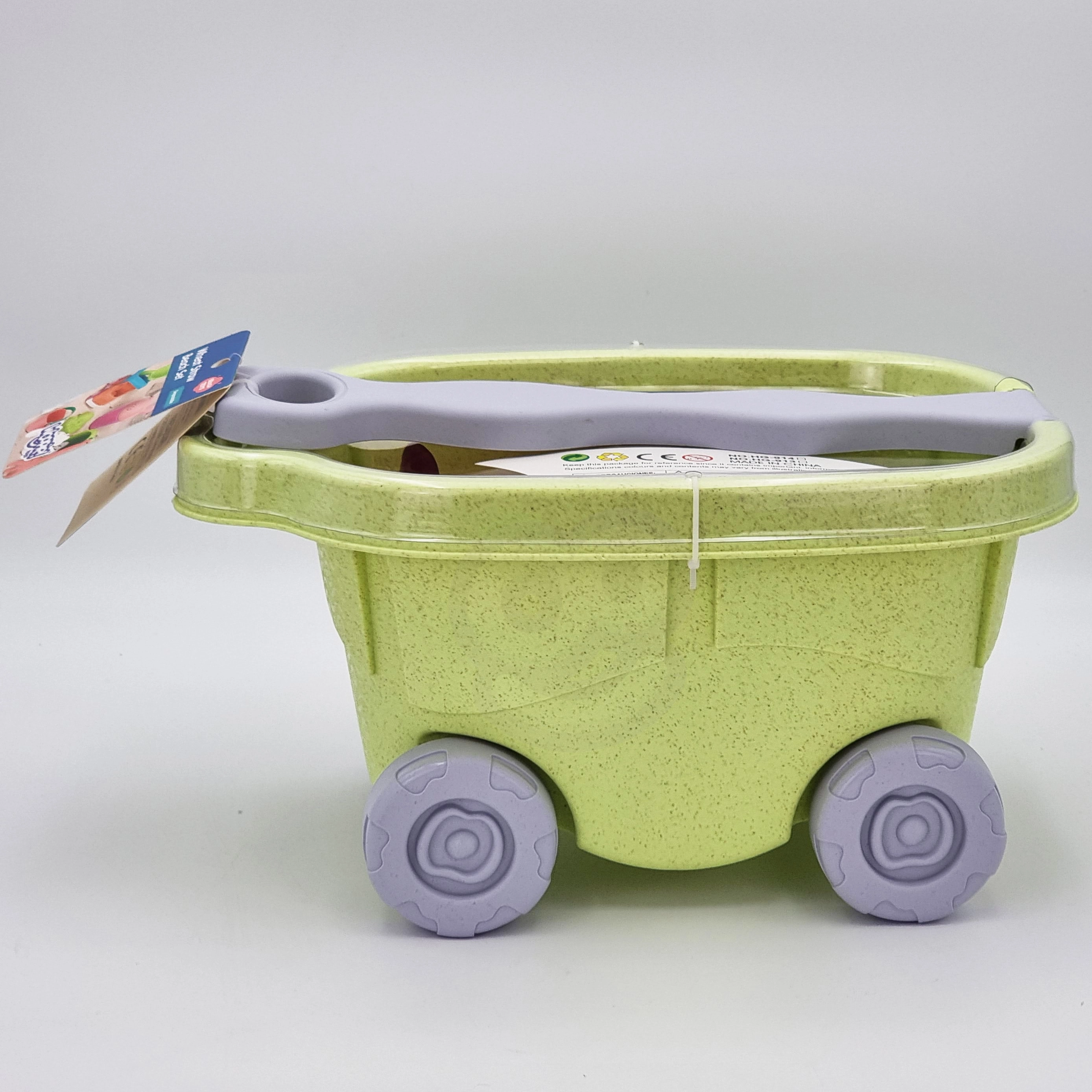 Könnyű műanyag kocsi masszív fogantyúval és kerekekkel, amely megkönnyíti a gyerekeknek a játékok, a homok és a víz szállítását. Ösztönzi az önállóságot és új dimenziót ad a játéknak.