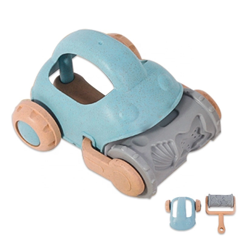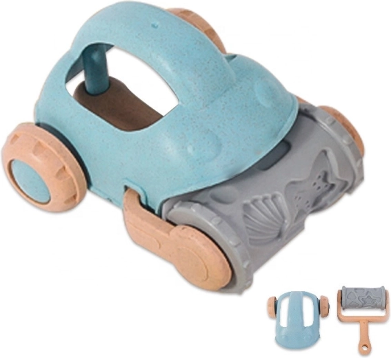 Szórakoztató jármű dombornyomott hengerrel, amely tengeri mintákat hoz létre a homokban, fejlesztve a gyerekek fantáziáját és finommotorikáját.