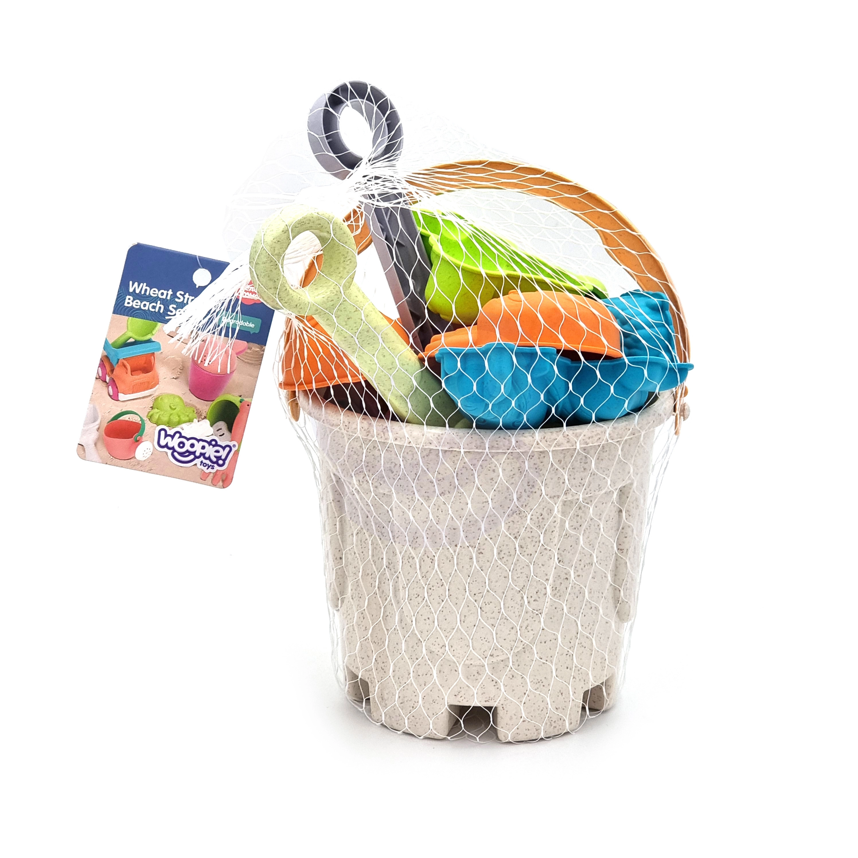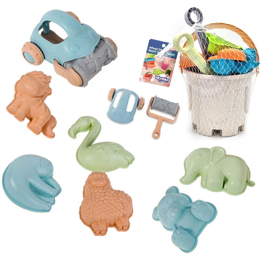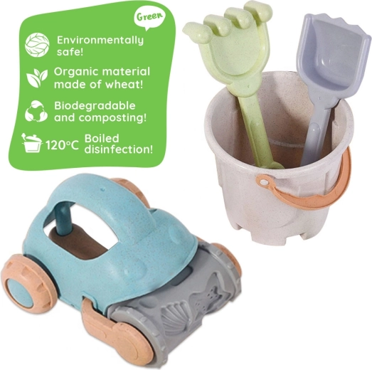 A WOOPIE márka környezetbarát homokozó készlete búzaszál alapú organikus anyagból készül, amely biológiailag lebomló és komposztálható. Tartós kivitelének, lekerekített formáinak és könnyű szerkezetének köszönhetően ideális a kisgyermekek kezeihez és a biztonságos kinti játékhoz.