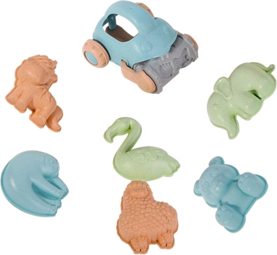 A csomag mindent tartalmaz a kreatív építéshez és formázáshoz: vödör erős fogantyúval, 6 állatforma, lapát, gereblye, valamint egy vidám kisautó lenyomatkészítő hengerrel. Támogatja a finommotorikát, a szem–kéz koordinációt, a térbeli gondolkodást és a szociális készségeket közös játék során.