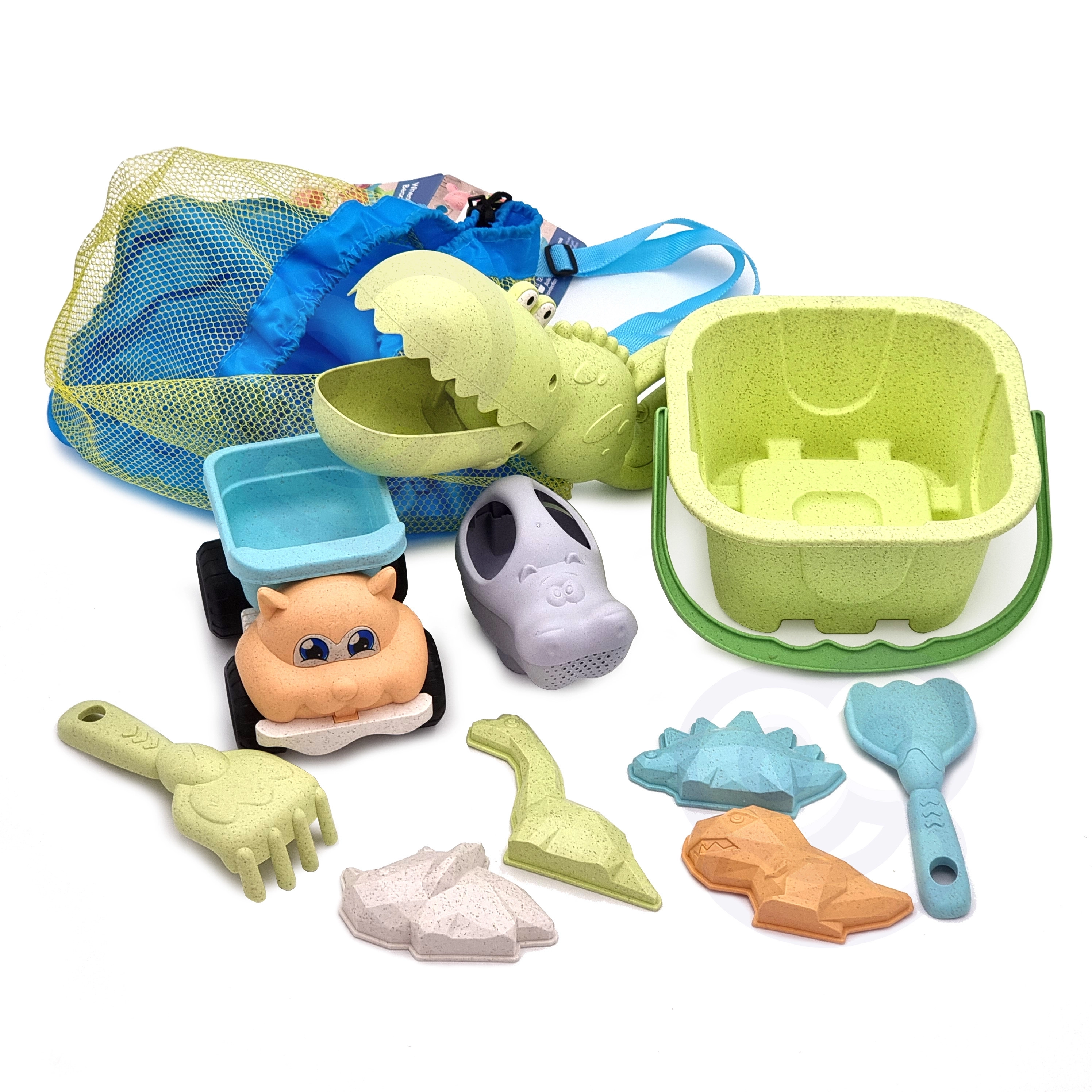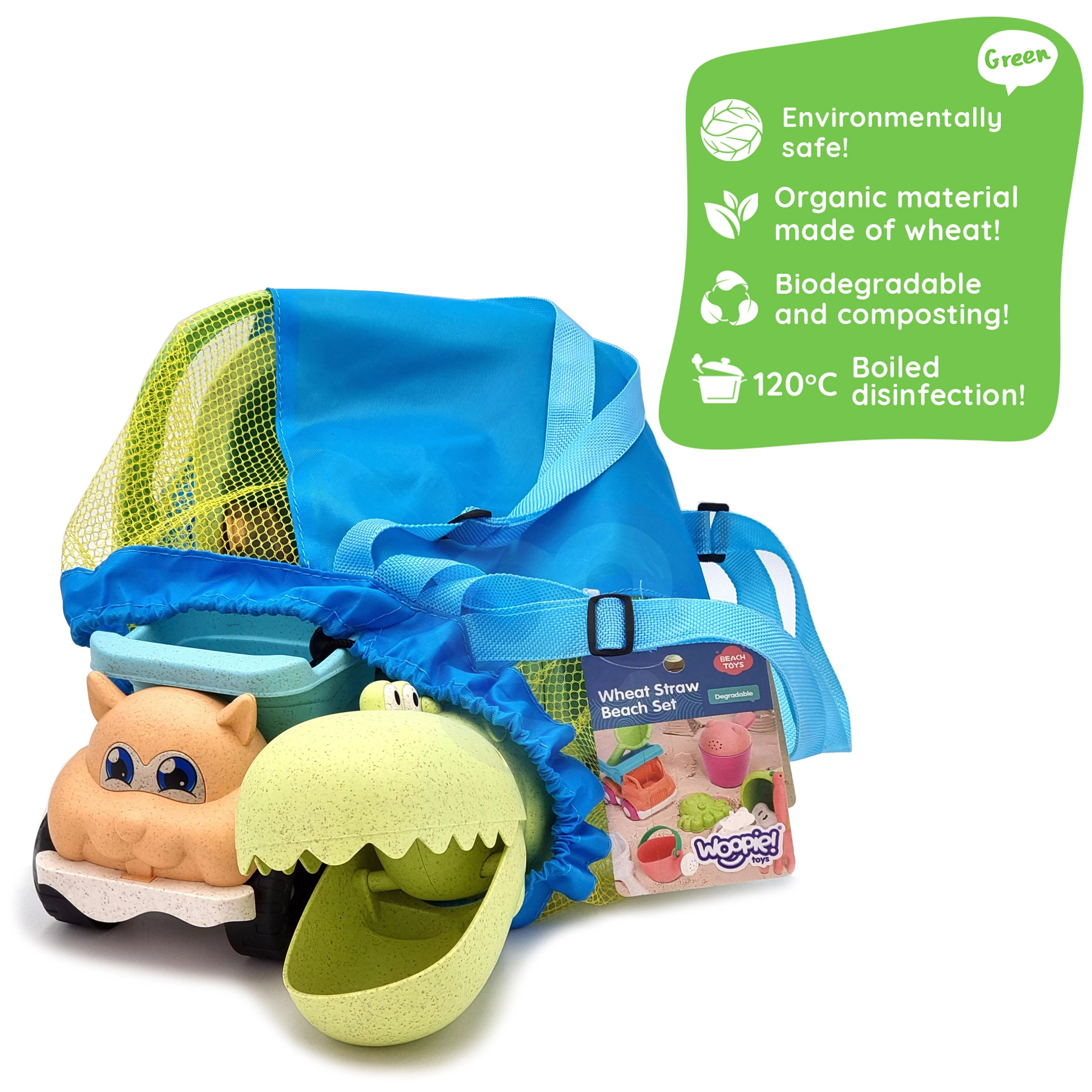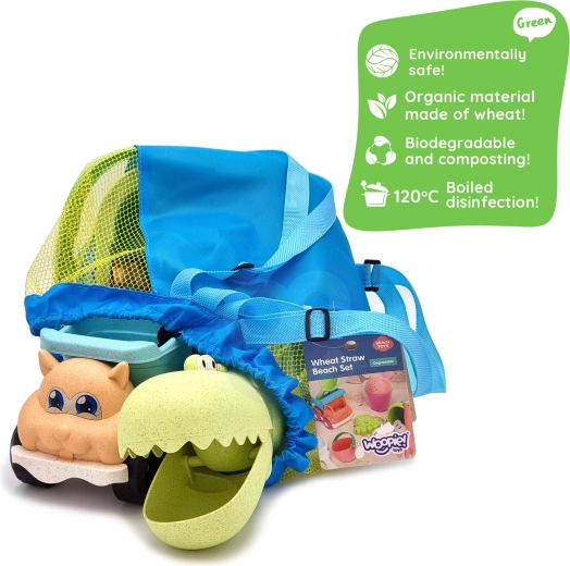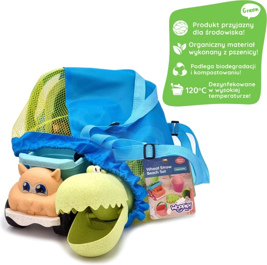 Fedezze fel a fenntartható játékélményt a WOOPIE GREEN készlettel modern pasztell színekben. A búzaszál-alapú organikus anyag biológiailag lebomló és komposztálható, így a gyerekek önfeledten alkothatnak, Ön pedig jó érzéssel lehet a természet védelme iránt. A levegős hálós hátizsák megkönnyíti a játékok szállítását és szárítását vízparti játék után.