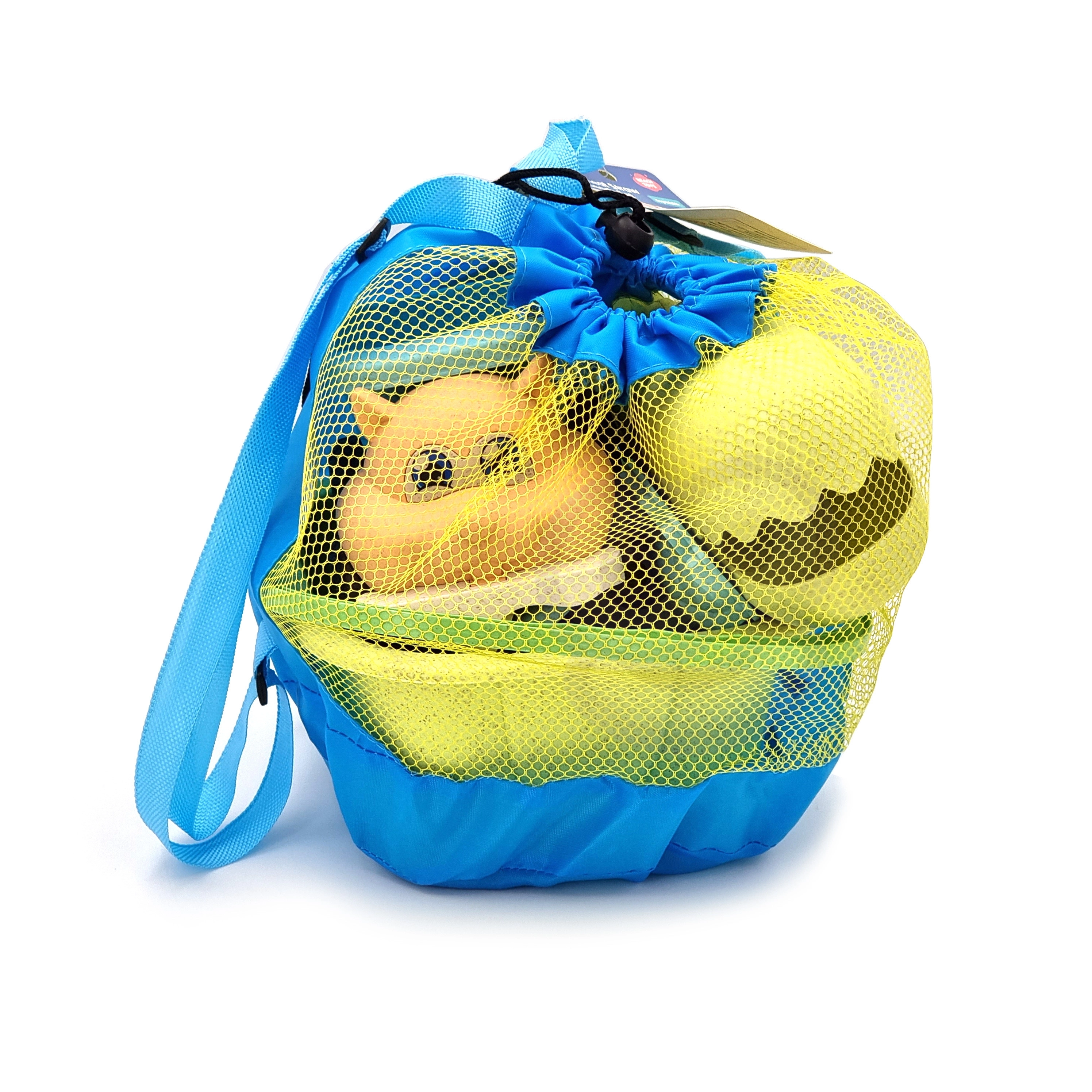 A könnyű, hálós zsák hátizsákként szolgál – könnyű hordozás, gyors lecsepegtetés és szárítás, kevesebb homok a táskában a strandról hazafelé.