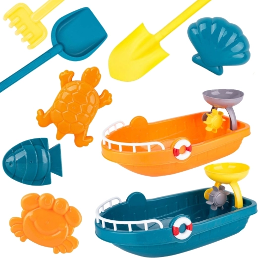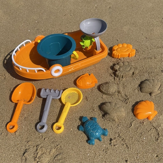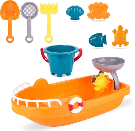 A nagy hajó munkatálként szolgál homokhoz és vízhez, valamint praktikus dobozként az összes kiegészítő szállításához és tárolásához.