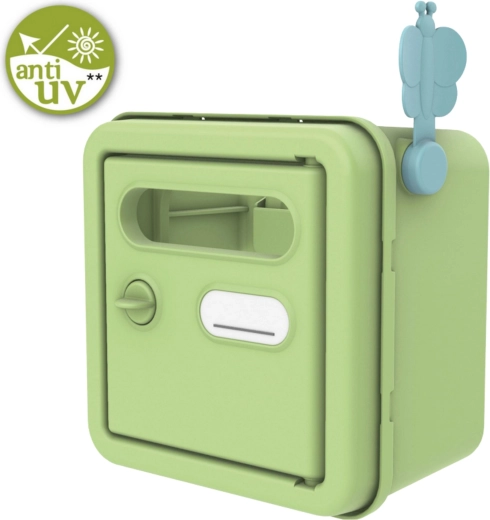 Minőség és fenntarthatóság hangsúlyozása: a postaláda 40%-ban újrahasznosított műanyagból készült, és UV-védelemmel rendelkezik, amely megakadályozza a színek kifakulását. A masszív kialakítás tartósságot és stabilitást biztosít a mindennapi játék során beltéren és kültéren egyaránt.
