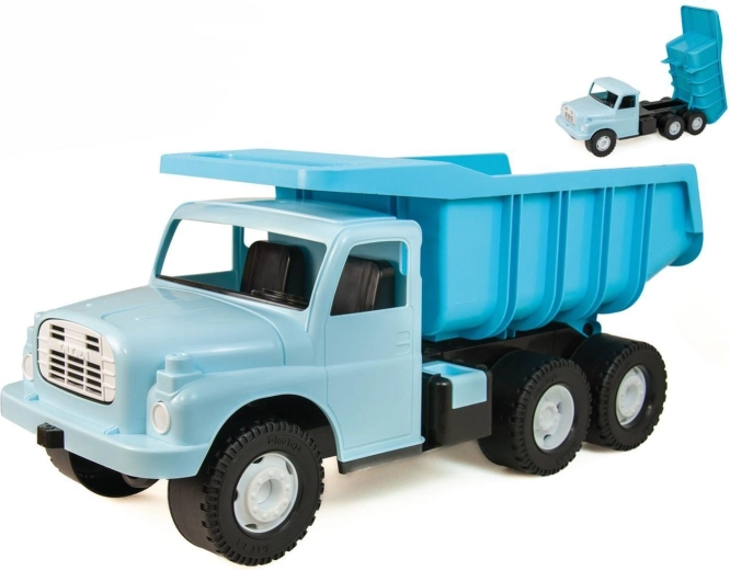 A legendás Tatra 148 elegáns világoskék színben egy nagy és strapabíró billencs teherautó, 72 cm hosszú, ideális homokozóba és otthonra is. Masszív felépítésű, biztonsági retesz védi a plató véletlen kiborításától, és ftalátmentes, biztonságos műanyagból készül. A gyerekek biztonságosan ráülhetnek a platóra és gurulhatnak vele. Cseh gyártmány a DINO Toys-tól, 1 éves kortól ajánlott.