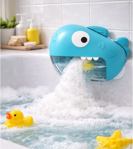 Az interaktív, cápa alakú fürdőjáték örömteli rituálévá varázsolja a rutinszerű tisztálkodást. Csak rögzítse a tapadókorongokkal a sima felületre, töltse fel vízzel és egy kis tusfürdővel a kivehető tartályt, majd egyetlen gombnyomással indítsa el a bőséges hab készítését, amely a cápa szájából áramlik, és a fürdés teljes ideje alatt szórakoztatja a gyerekeket.
