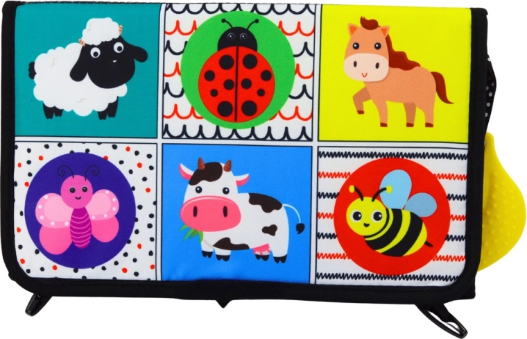 A szőnyeg különféle érzékszervi ingereket kínál – susogó felületeket, fellógatható rágókákat és változatos textúrákat a finommotorika fejlesztéséhez. Puha, könnyű és könnyen összehajtható, így babakocsiban, kiságyban vagy útközben is magával viheti. Kiváló tummy time-hoz, hason fekvős játékhoz és az első fejeme-lési próbálkozásokhoz.