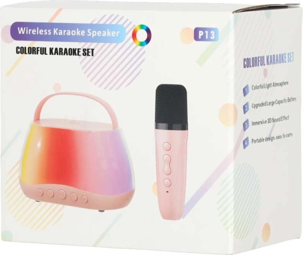 Változtasson bármely bulit otthoni show-vá. Ez a kompakt karaoke szett Bluetooth-os vezeték nélküli hangszórót, 2 mikrofont és RGB LED világítást kínál a remek hangulatért. Élvezze a stabil hangzást, az egyszerű csatlakoztatást USB/TF/AUX-on keresztül és az hosszú üzemidőt – ideális otthonra és útközben is.