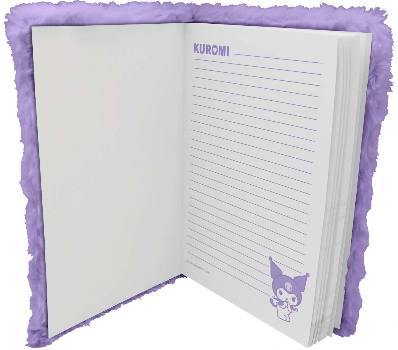 Aranyos plüss jegyzetfüzet KUROMI motívummal, ideális gyermeki álmok, emlékek, rajzok és kis titkok megőrzésére. A puha plüss borító kellemes tapintású, ösztönzi a kreativitást és a naplóírás örömét.