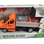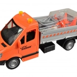 Ez a narancssárga teherautó rakodóplatformmal és lehajtható rámpákkal hiteles élményt nyújt a városi szolgáltatások és útmunkák világából. A lendkerekes meghajtás elemek nélkül is egyenletes mozgást biztosít, míg a valósághű részletek és kiegészítők támogatják a fantázia és a finommotorika fejlődését.