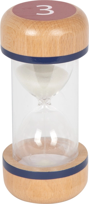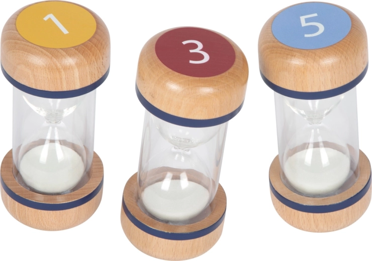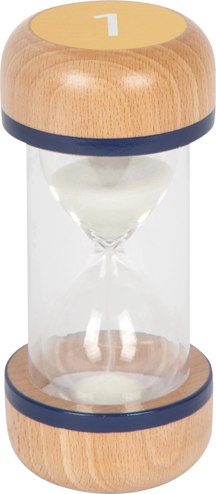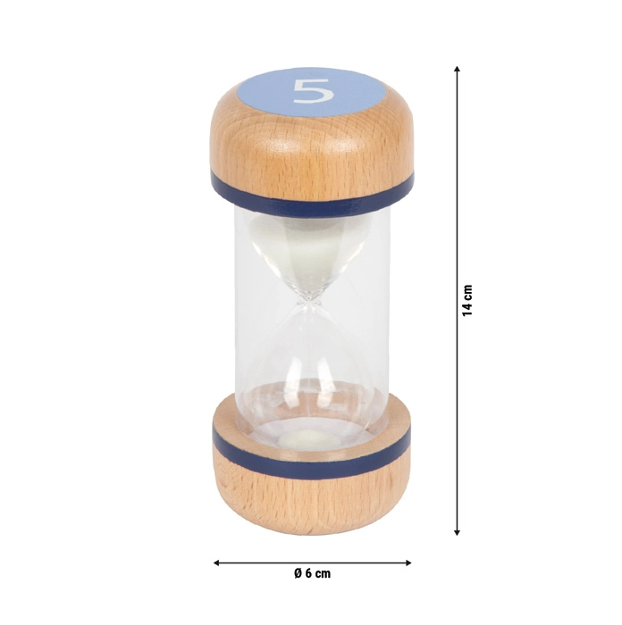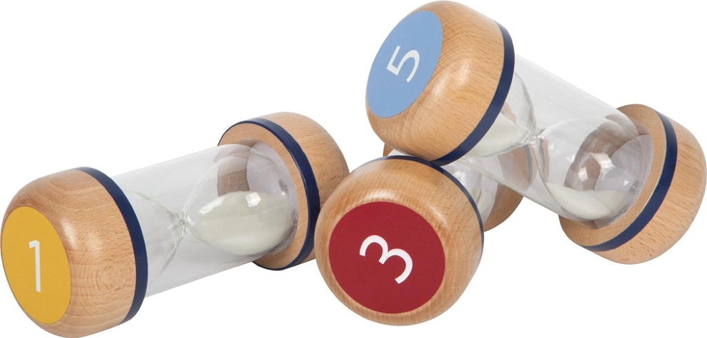 Támogasd a gyerekek összpontosítását és önszervezését ezzel a praktikus homokóra készlettel. A színnel elkülönített 1, 3 és 5 perces időtartamokkal könnyű beállítani és vizuálisan követni a rövid feladatokat és szüneteket. Az átlátszó test fehér homokkal egyértelmű rálátást ad a folyamatra, míg a robusztus, bükkfából készült végek stabil fogást és biztonságot nyújtanak.