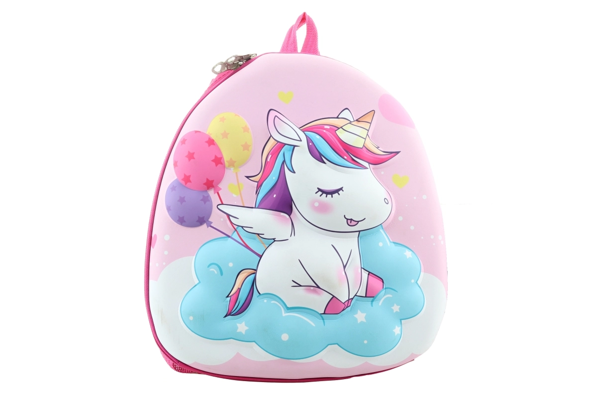 Színes nyomat felhőn ülő unikornissal, amely varázslatot kölcsönöz a hátizsáknak és ösztönzi a gyermeki fantáziát – óvodába és kirándulásokra egyaránt ideális.