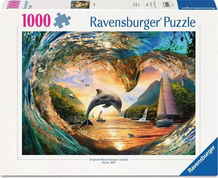 Merüljön el a kirakók megnyugtató világában a RAVENSBURGER A tengeri hullámok szíve puzzléval. A csúcsszintű gyártási technológiának köszönhetően pontos és tiszta vágásokra, masszív darabokra és élénk színekre számíthat, amelyek mélységet és eleganciát adnak a motívumnak.