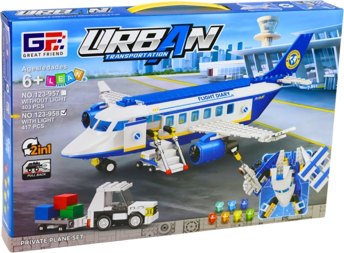 Ez a kreatív 2 az 1-ben építőkészlet elragadtatja a repülés és a technika fiatal rajongóit. Egyetlen szettből igényesen kidolgozott személyszállító repülőt nyitható részekkel és pilótafülkével, vagy robotfigurát építhetsz mozgatható ízületekkel. A fényhatásoknak köszönhetően mindkét modellváltozat sötétedés után is életre kel.