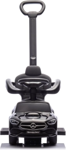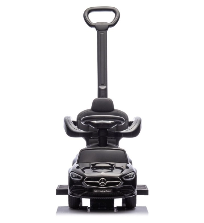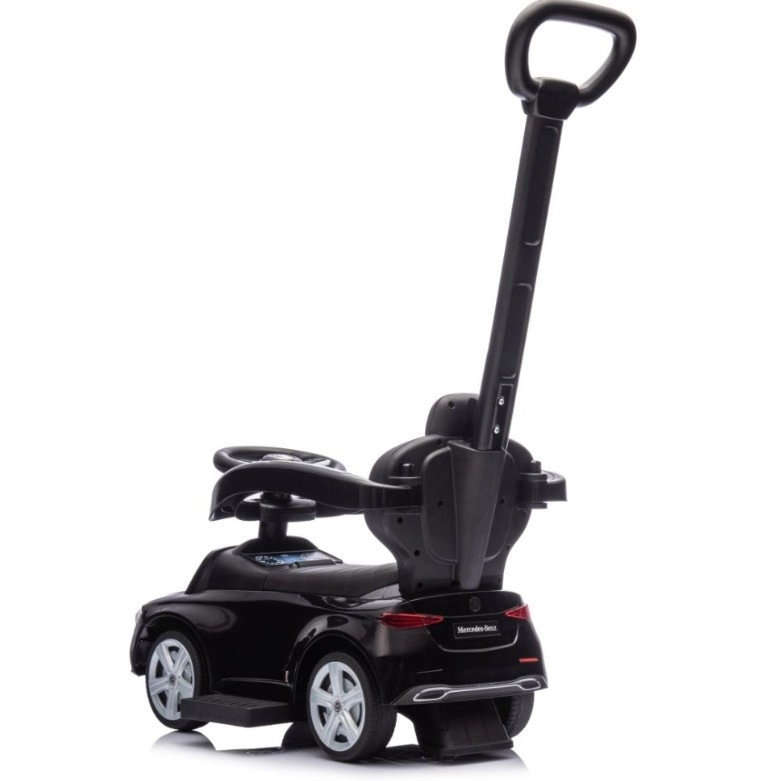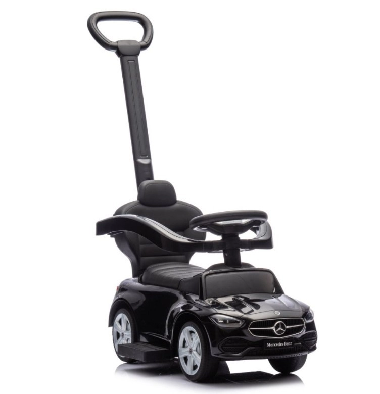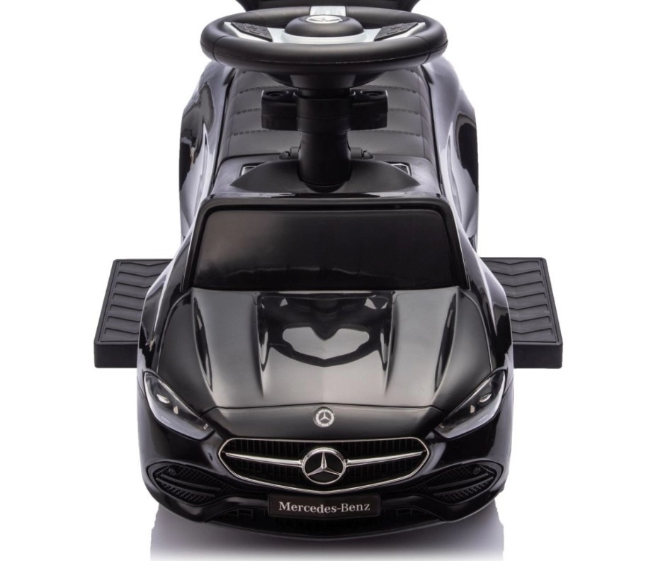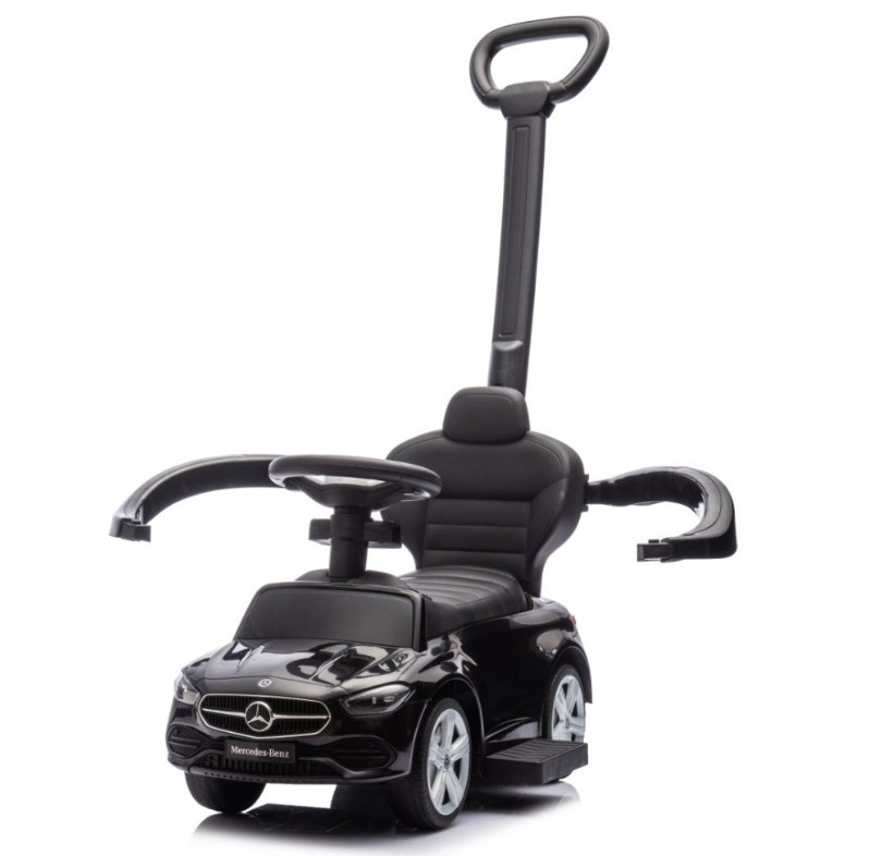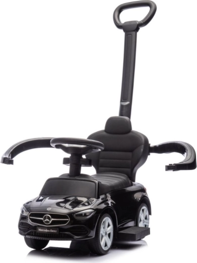 Stílusos gyerek tolóbicikli MERCEDES C‑Class elegáns fekete színben, élethű megjelenéssel, biztonságos haladással és kényelmes használattal a kis sofőröknek. A vezetőrúdnak, oldalsó védőkorlátoknak, felhajtható lábtartóknak és a ülés alatti tárolórekesznek köszönhetően ideális az első kiruccanásokhoz és az otthoni játékhoz, miközben támogatja a motoros készségek és a koordináció fejlődését.