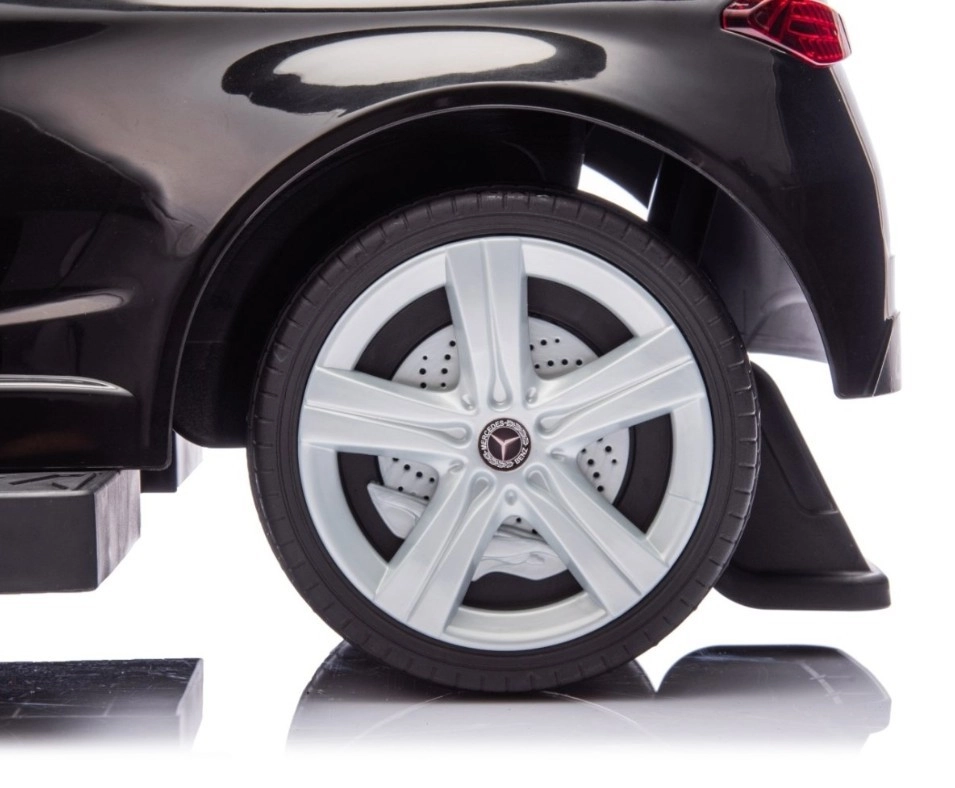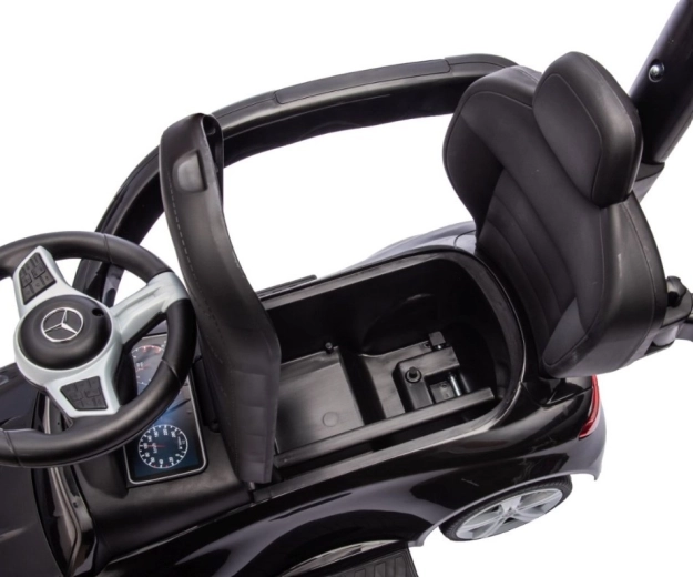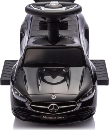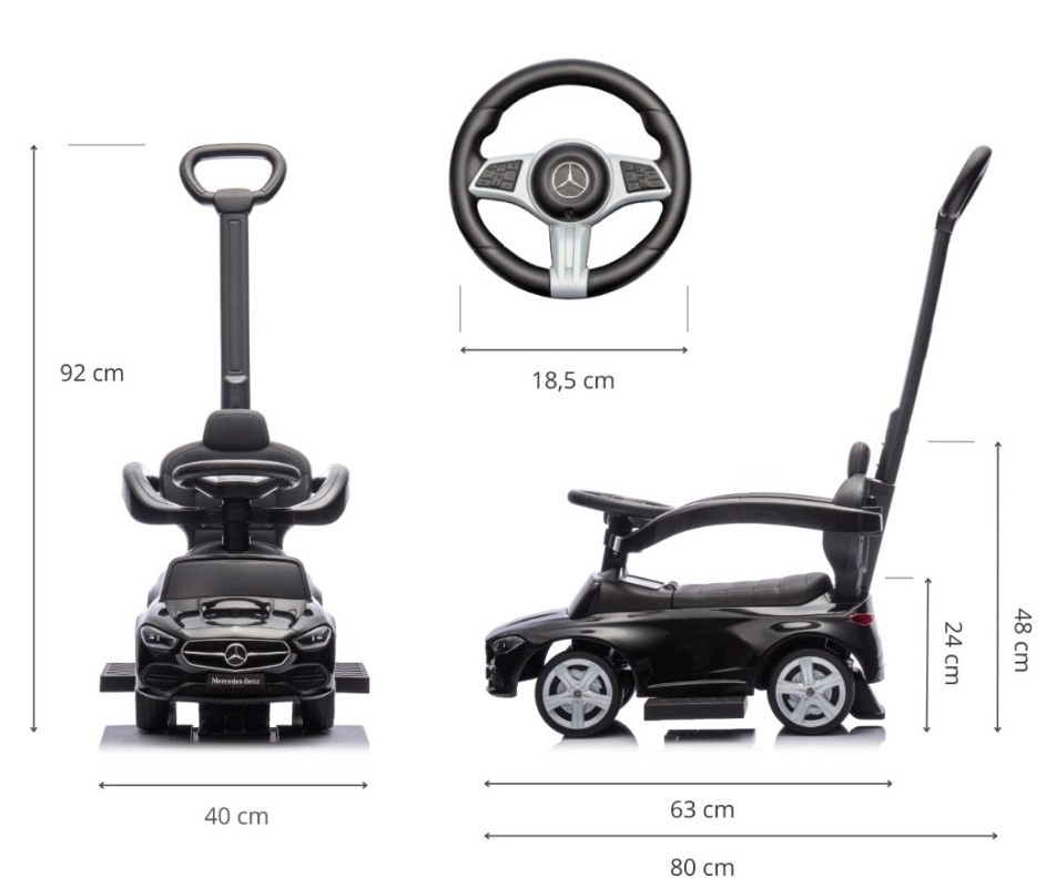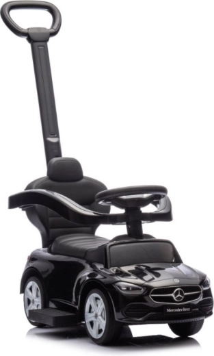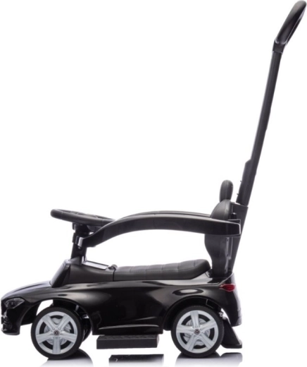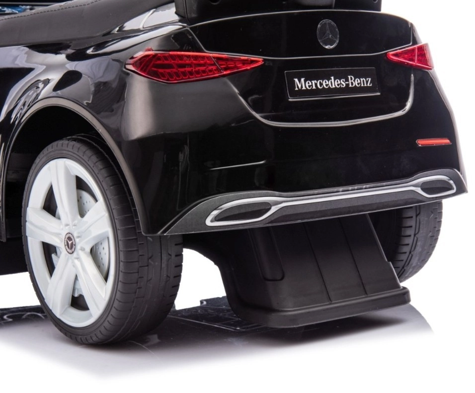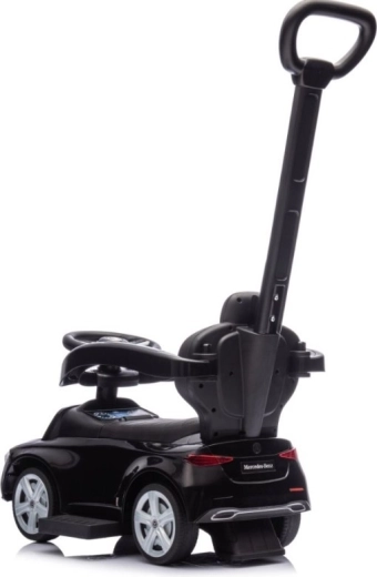 Stílusos gyerek tolóbicikli MERCEDES C‑Class elegáns fekete színben, élethű megjelenéssel, biztonságos haladással és kényelmes használattal a kis sofőröknek. A vezetőrúdnak, oldalsó védőkorlátoknak, felhajtható lábtartóknak és a ülés alatti tárolórekesznek köszönhetően ideális az első kiruccanásokhoz és az otthoni játékhoz, miközben támogatja a motoros készségek és a koordináció fejlődését.