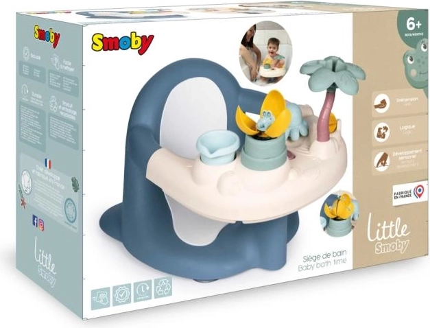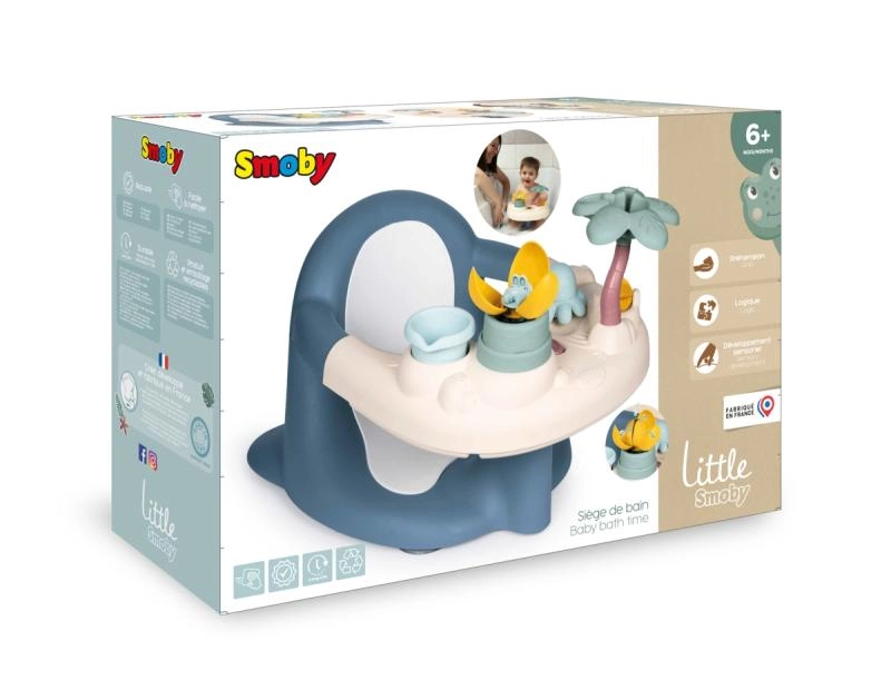 A csomag része az interaktív játéktálca 5 vizes tevékenységgel, amelyek fejlesztik az érzékelést és a finommotorikát: vízimalom, öntőpohár, pálma permetező, „varázs” virág és vizet spriccelő polip. Négy erős tapadókorong tartja szilárdan az ülést a kád alján a maximális stabilitásért. Franciaországban készült.