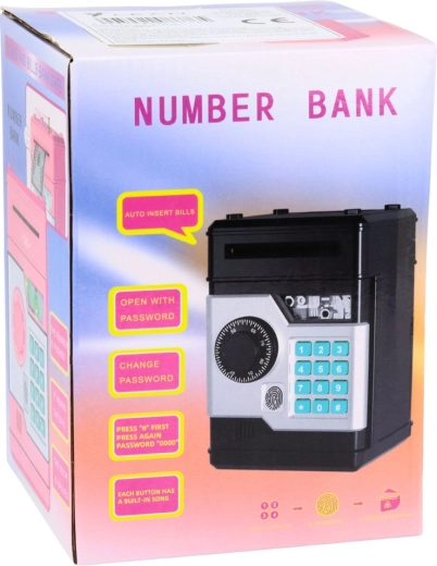 A modern, széf megjelenésű persely ideális azoknak a gyerekeknek, akik most tanulnak bánni a pénzzel. A behelyezett bankjegyet a készülék automatikusan behúzza, az érmék a felső nyíláson keresztül esnek be. A négyjegyű PIN megadása után az ajtó kinyílik; ha nyitva marad, a persely kb. 20 másodperc után emlékeztet a bezárására.