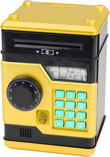 Stílusos, arany színű, széf formájú gyerekpersely, amely játékosan fejleszti a pénzügyi tudatosságot. Kínál négyjegyű PIN-kódot, automatikus bankjegybehúzást, érme nyílást, valamint fény- és hanghatásokat. A zárható ajtókkal a gyerekeknek megvan a saját terük és kontrolljuk a megtakarításaik felett, ami motivál a rendszeres spórolásra.
