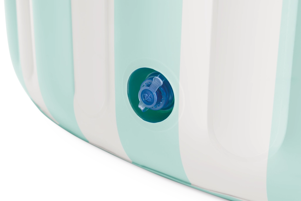 A Coastal Luxe stílusos, felfújható gyerekmedence finom, türkiz és fehér csíkokkal biztonságos felfrissülést kínál 3 éves kortól. A strapabíró PVC-ből készült, masszív és kényelmes szerkezetnek köszönhetően stabil és kellemes tapintású. Kompakt méretei kertbe és erkélyre is ideálisak, a praktikus leeresztő szelep pedig megkönnyíti a karbantartást.