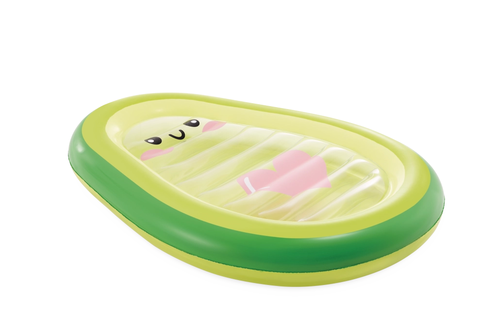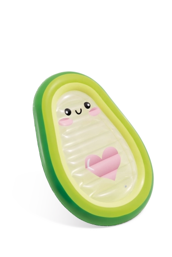 Élvezd a nyarat teljes gőzzel a játékos, avokádó alakú matraccal, amelyet átlátszó közép rész aranyos arcocskával és rózsaszín szívvel tesz különlegessé. Tartós PVC-ből készült, két szeleppel a gyors felfújáshoz és leeresztéshez, kényelmes fekvést és jó stabilitást kínál a vízen. Tökéletes medencébe, strandra és nyaralásra – felnőtteknek és nagyobb gyerekeknek egyaránt. Tapasztald meg a stílusos dizájn, a kényelem és a vízi szórakozás találkozását.