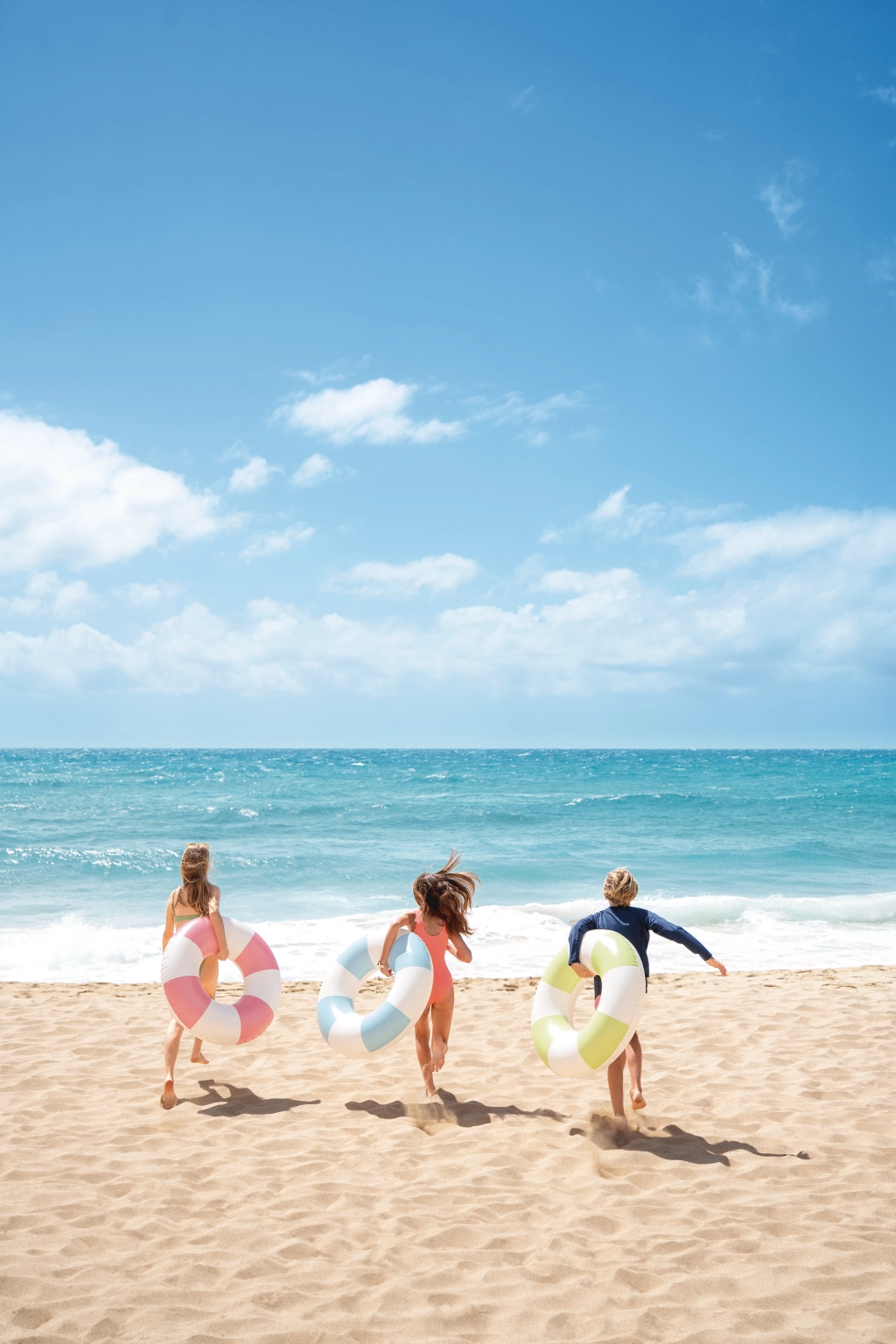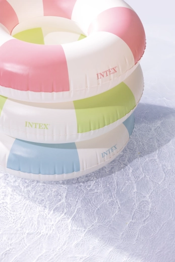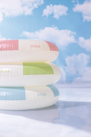 A Coastal Cabana felfújható úszógumi friss, pasztell tónusú kék, zöld és rózsaszín designját praktikus funkciókkal ötvözi a biztonságos és kényelmes vízi szórakozáshoz. A 91 cm átmérő elegendő teret és kényelmet biztosít medencéhez és tengerhez egyaránt.