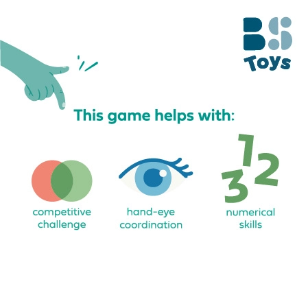 A stabil fa szerkezet számozott szintekkel megkönnyíti a korrekt pontozást, és izgalmas összecsapásokat hoz. A játék könnyen hordozható, kültéren és beltéren egyaránt használható. A QR-kód beolvasásával magyar és szlovák útmutató érhető el.