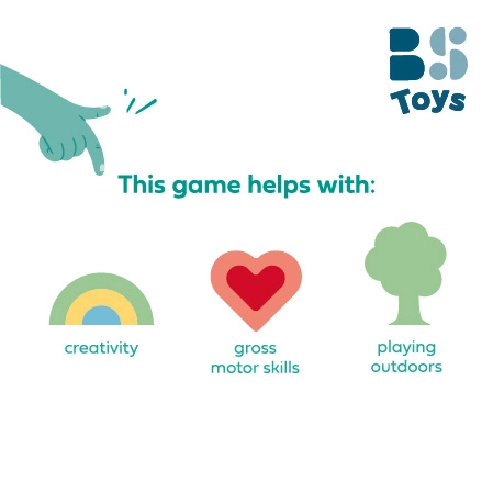 Ez a sokoldalú kültéri játékkészlet bármely járdát vagy udvart színes játszótérré varázsol. A gyerekek könnyedén felrajzolják a játéktáblákat, és az illusztrált kártyák alapján kipróbálják a kedvenceket – a klasszikus ugróiskolát vagy amőbát éppúgy, mint a lendületes dartsot, lúdjátékot vagy a távolugrást. Az erős pasztellkréták élénk, jól látható nyomot hagynak a durvább felületeken is, és könnyen lemoshatók.