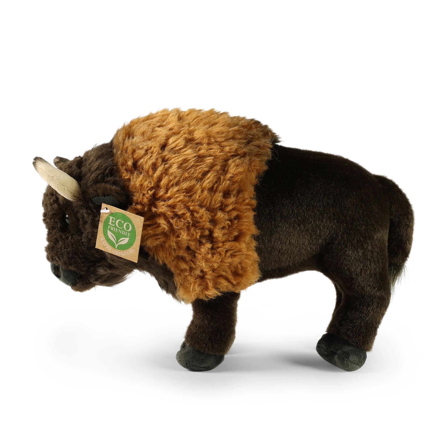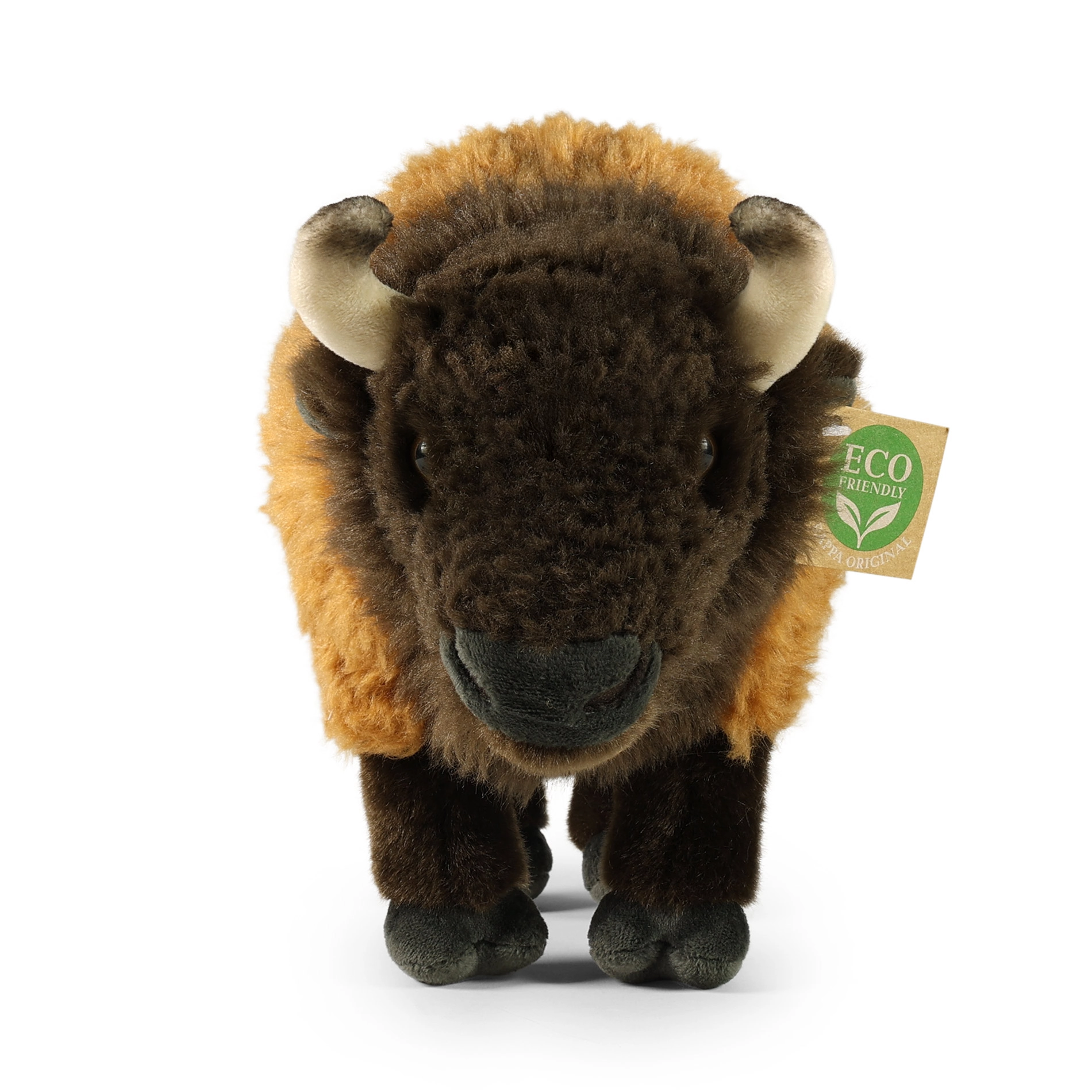 Élethű szőrtextúra, apró szarvak és gondos kézi varrás adnak a bölénynek élő hatást és egyedi karaktert.