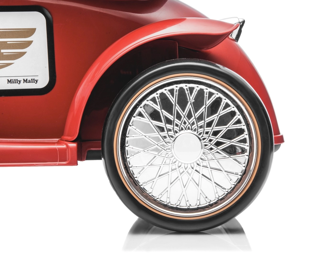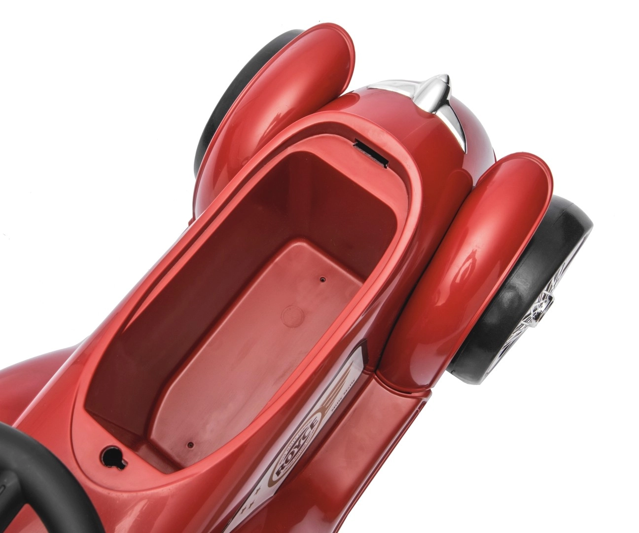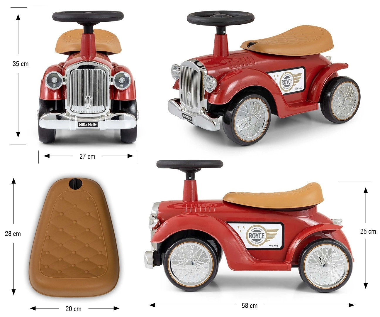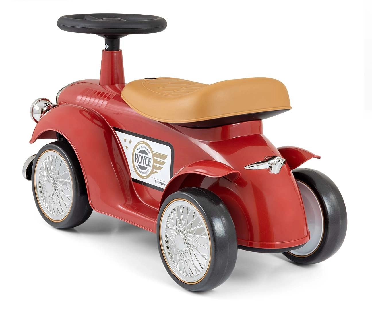A kormány forduláskorlátozása segít megelőzni a felborulást, a duda pedig minden kis autórajongót megörvendeztet. Az ülés alatt praktikus tároló rejlik az apróságoknak. A krómozott első „grill” és a ROYCE logóval ellátott retro részletek időtlen stílust adnak a játéknak.