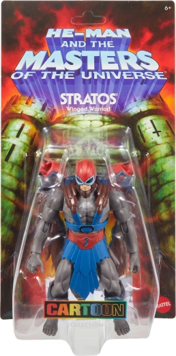 STRATOS, a repülő harcos és HE-MAN szövetségese őrjáratozik Eternia egén, és védi a Castle Grayskullt Skeletor erőivel szemben. A figura modern megközelítésben hozza el a klasszikus hőst, markáns részletekkel és széles beállítási lehetőségekkel az akciójelenetekhez vagy vitrinben való kiállításhoz.