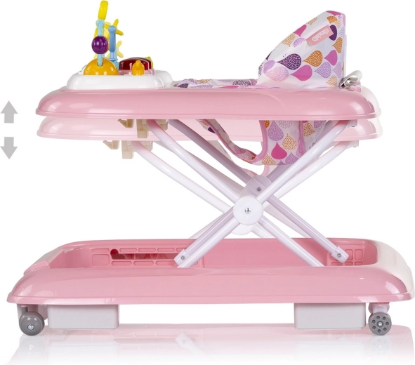 A Chipolino Baby Steps interaktív bébijáró rózsaszín kivitelben támogatja kisbabád első lépéseit. Biztonságos és stabil szerkezetet, 3 fokozatban állítható magasságot, puha ülést magas háttámlával, valamint szórakoztató panelt dallamokkal és fényekkel kínál a finommotorika és az érzékelés fejlesztéséhez.