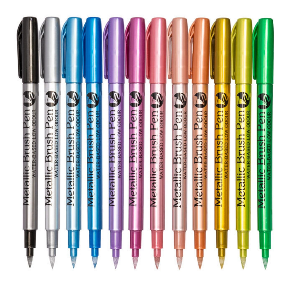 Ez az univerzális metálfényű tollkészlet ideális scrapbookhoz, kalligráfiához, üdvözlőkártyákhoz, kövek, üveg vagy kerámia díszítéséhez. A nejlon, puha és rugalmas hegynek köszönhetően simán és pontosan ír – a finom részletektől a nagyobb felületek kiszínezéséig.
