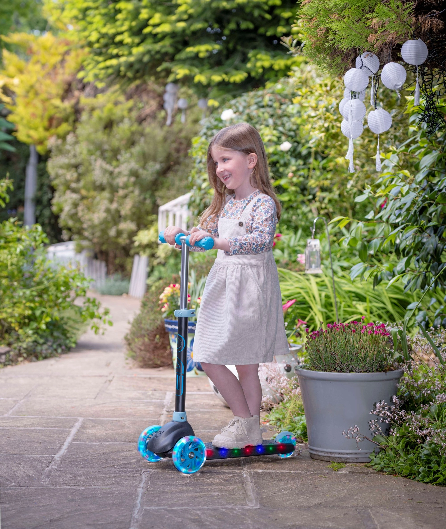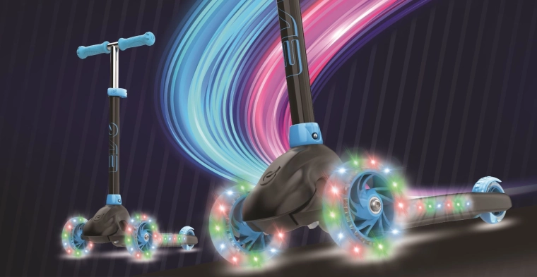 A világító kerekek és a platform széle látványos hatást keltenek, és javítják a láthatóságot szürkületben. Csak 3× AAA elem szükséges (nem tartozék).