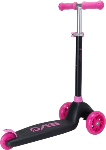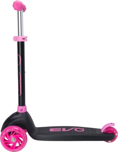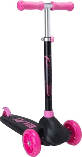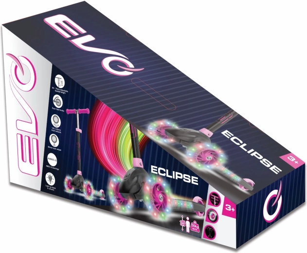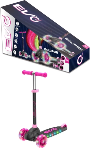 Szórakoztató és biztonságos háromkerekű roller 3 éves kortól. A EVO Eclipse modell a két első keréknek köszönhetően stabil haladást kínál, állítható kormánnyal követi a gyermek növekedését, valamint LED világítású kerekekkel és alvázvilágítással növeli a láthatóságot és az élményt. A bedöntéses kormányzás fejleszti a koordinációt, a lábfék pedig biztos megállást nyújt.