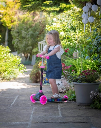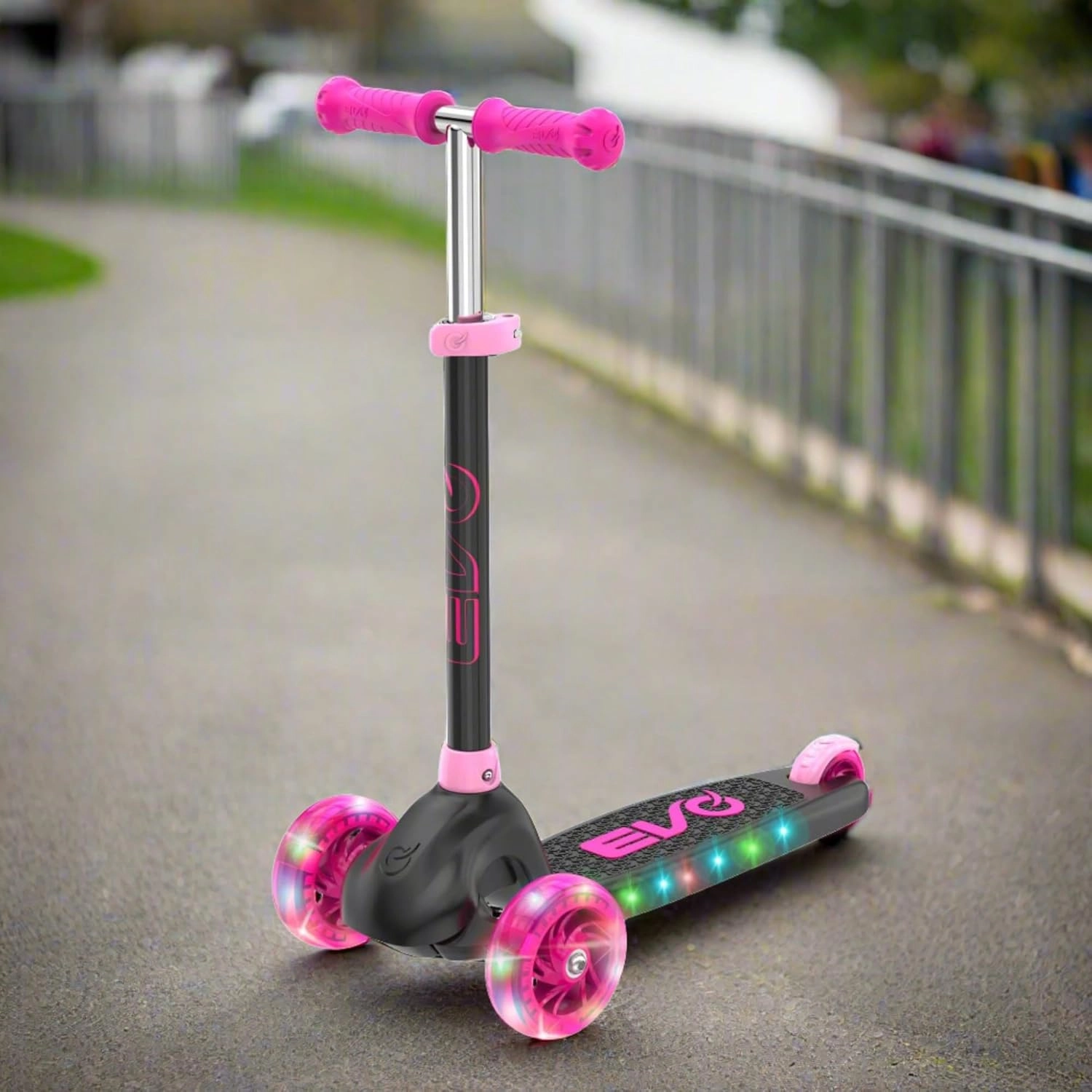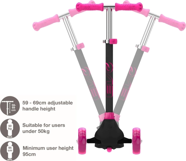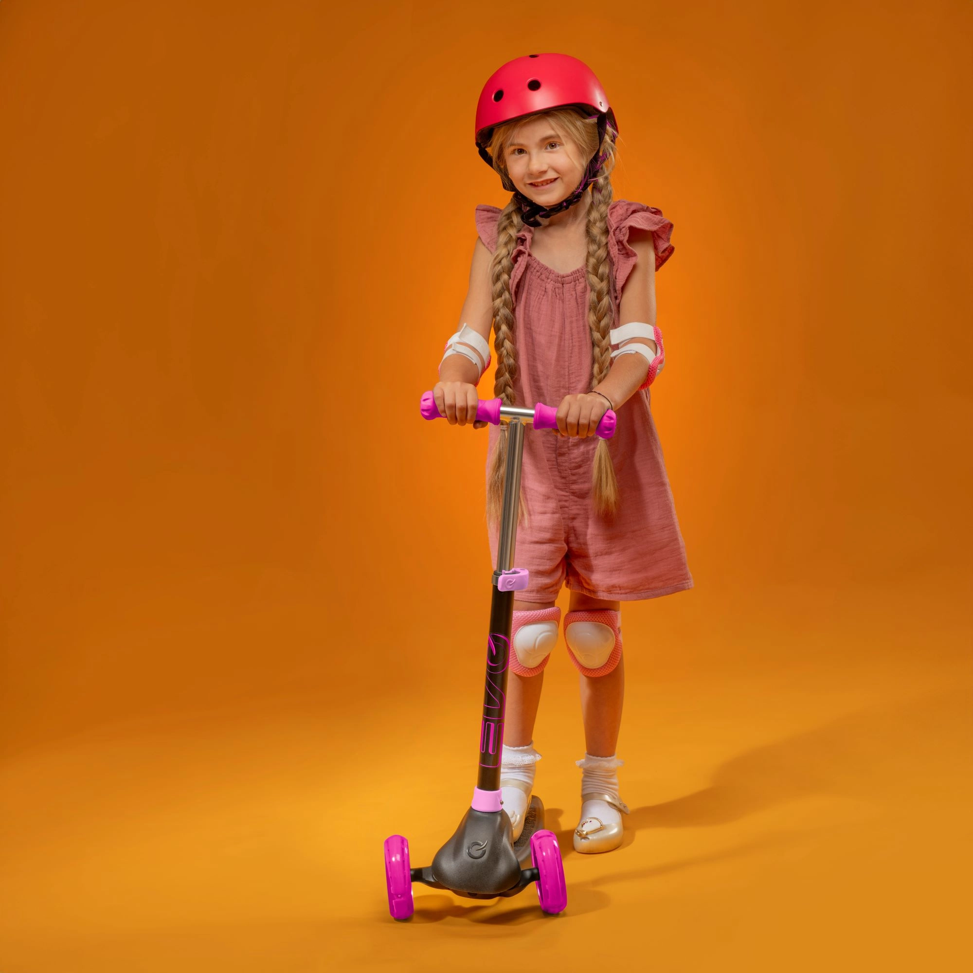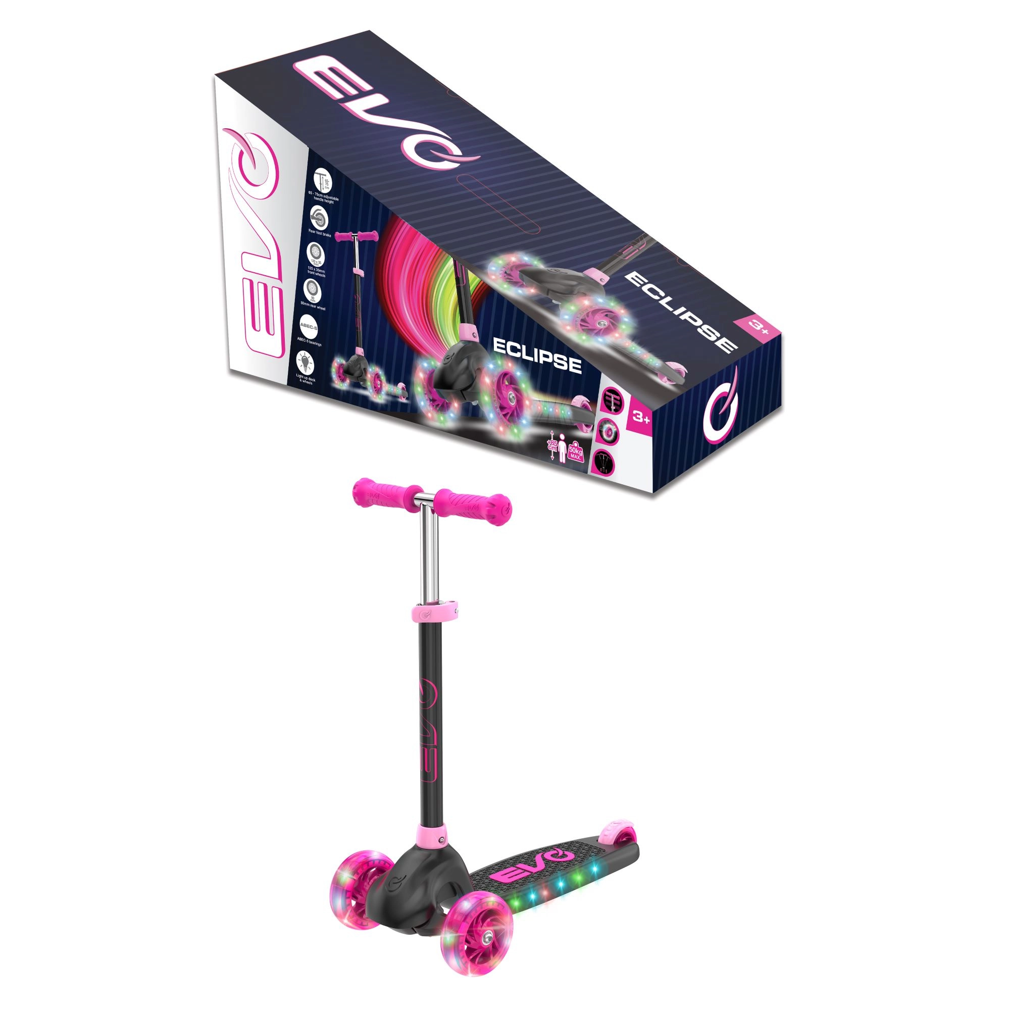 Az EVO Eclipse roller ideális első választás a kis motorosoknak. A két nagy első kerék és az alacsony fellépő kivételes stabilitást ad, míg a bedöntéses kanyarodás segít természetesen fejleszteni az egyensúlyt és koordinációt. A LED kerekek és az alvázvilágítás feldobják minden gurulást, és javítják a láthatóságot a kora esti menetek során.