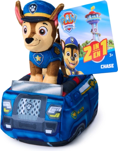 Ez a 2 az 1-ben plüss szett a népszerű hőst, Chase-t a Mancs őrjáratból egy puha rendőrautóval párosítja. A gyerekek betehetik és kivehetik a kutyust az autóból, fejleszthetik képzeletüket, és újrajátszhatják a sorozatból ismert mentőakciókat.