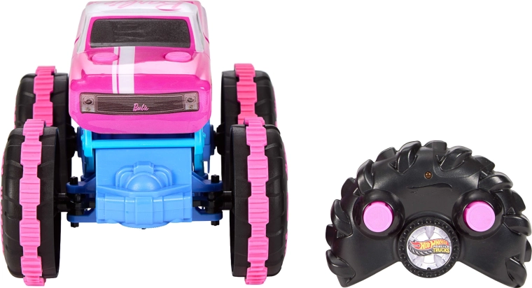 A BARBIE színeiben pompázó, stílusos terepjáró ötvözi a monster truck erejét a játékos dizájnnal. A masszív alváz, a megemelt futómű és a markáns mintázatú, nagyméretű kerekek kiváló tapadást nyújtanak járólapon és kavicson egyaránt. A 2,4 GHz-es vezérlés zökkenőmentes, zavarásmentes irányítást és több autó egyidejű használatát garantálja.