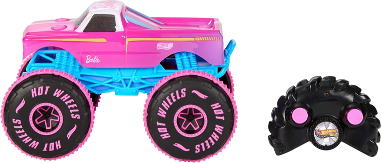 Rózsaszín-kék RC Monster Truck HOT WHEELS BARBIE 1:24 szórakozást nyújt bármilyen felületen. A nagy terepgumiknak, a stabil felépítésnek és a pontos 2,4 GHz-es vezérlésnek köszönhetően könnyedén megbirkózik a vezetéssel, trükkökkel és a hátsó kerekeken való haladással. Ideális 4 éves kortól, fejleszti a koordinációt és a kreativitást.