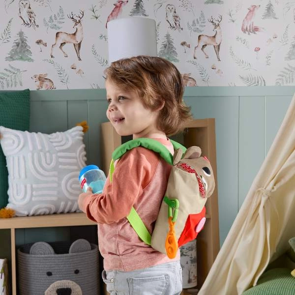 Az elemek kifejezetten kis kezekhez készültek: nagy gomb a zseben, könnyen nyomható klipsz, hajlítható, „ropogós” nasi és „kulacs”, amely a töltögetés utánzására hív. Minden darab befér a hátizsákba, így ideális otthonra és utazáshoz.