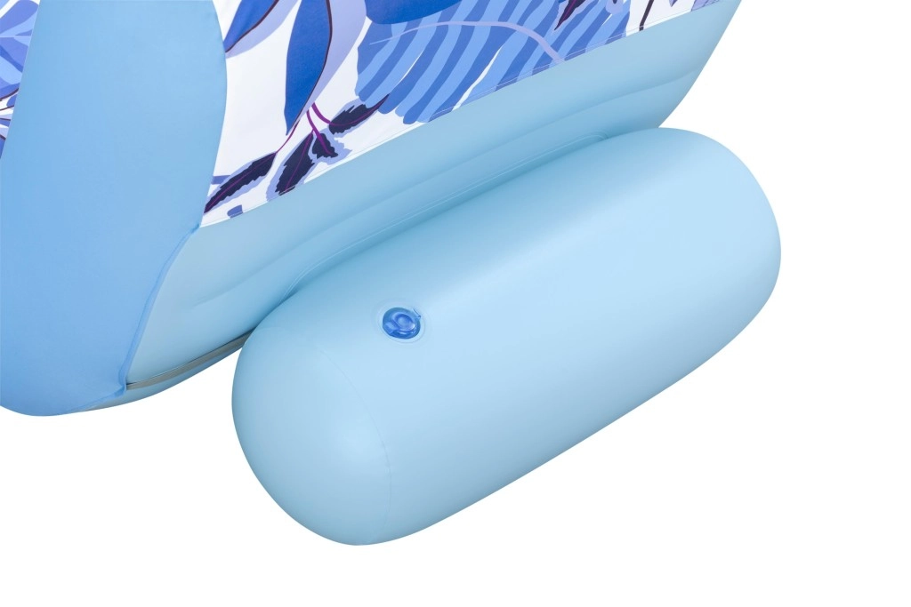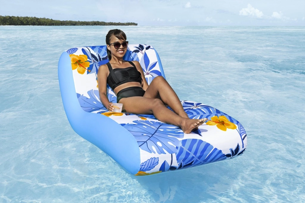 A Blissful Drifter felfújható nyugágyat medencés és kerti relaxációhoz tervezték. A 176 × 107 cm-es méret bőséges helyet ad üléshez és fekvéshez. Az ergonomikus kialakítás megemelt háttámlával és stabilizáló hengerrel az alsótest alatt támogatja a helyes testtartást és a kellemes ringatózást a vízen.