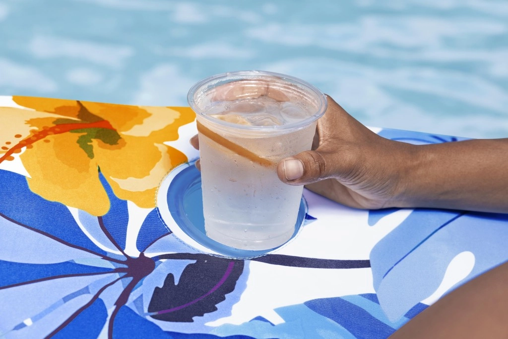 Az integrált tartó biztonságban tartja italát, miközben a víz felszínén pihen.