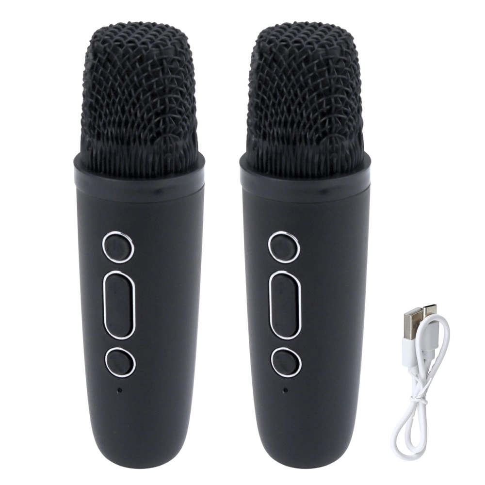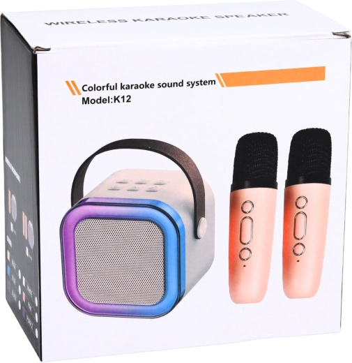 - Karaoke hangszóró, 2× vezeték nélküli mikrofon, USB kábel, használati útmutató