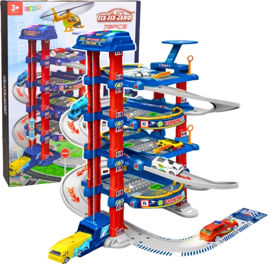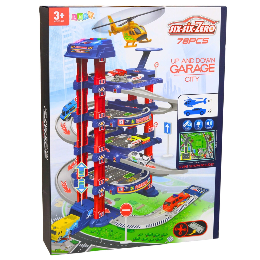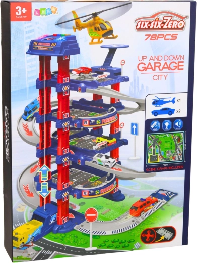 A nagy gyermek parkoló a kis autórajongók és a városi forgalom kedvelői számára készült. Az elektromos lift könnyedén feljuttatja az autókat a felső szintekre, ahonnan szélsebesen lecsúszhatnak a lehajtó pályán. A készlet része továbbá a helikopter-leszálló, közlekedési táblák és egy játékszőnyeg, amelyek együtt valósághű városi környezetet teremtenek.
