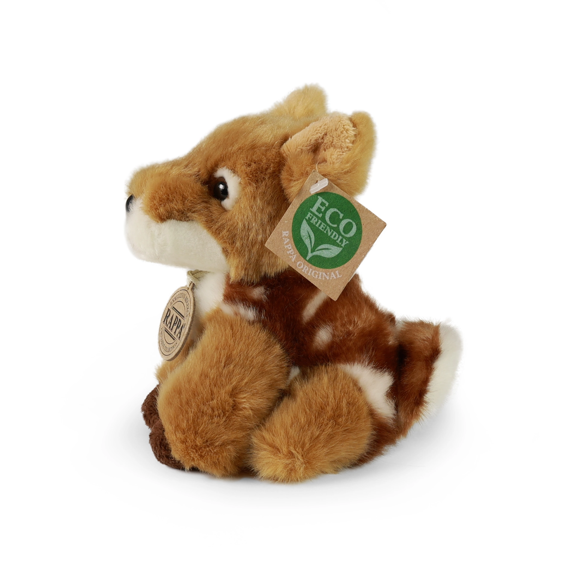 Ez a RAPPA exkluzív kollekciójából származó plüss őzgida első pillantásra magával ragad élethű megjelenésével és finom bundájával. Minden darab gondosan készül, hogy a lehető leghitelesebb legyen – a puha barna-fehér színezéstől a cuki fülek és orrocska részleteiig.