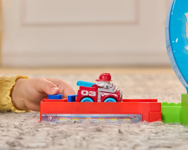 Indítsd hősies küldetésre a gyerekeket a kedvenc Mancs őrjárat kölykökkel. Helyezd a kisautót a kilövőbe, húzd meg a kart, és nézd, ahogy átszáguld a átlátszó hurkon, elkerüli a lángoló akadályt, majd a cél felé rohan. A stabil műanyag szerkezet, élénk színek és az egyszerű kezelés rengeteg biztonságos szórakozást garantál.
