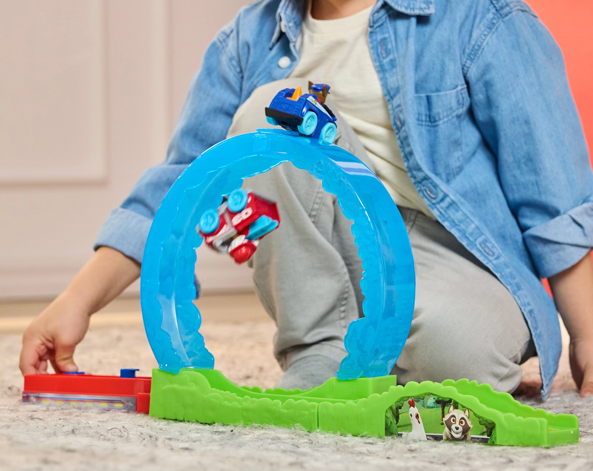 A magas huroknak köszönhetően a gyerekeket dinamikus, adrenalindús száguldás várja. A kisautók könnyedén áthaladnak a hurkon, és látványosan küzdik le az akadályokat.
