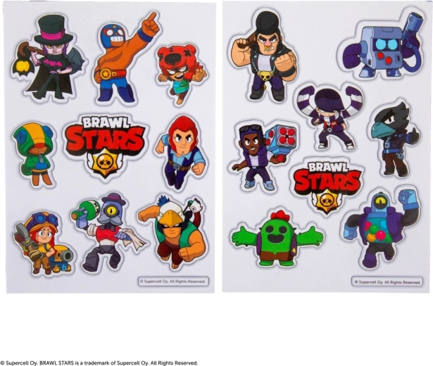 - Karakterek és szimbólumok a BRAWL STARS játékból (pl. Shelly, Colt, Jessie, Crow, Spike)