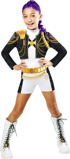 Stílusos gyerek jelmez Rumi karakteréről a népszerű K‑Pop Demon Hunters sorozatból, 9–10 éves korosztálynak, hivatalos licencelt dizájnnal, kényelmes viselettel és minőségi anyagokkal. Sötét tónusok kontrasztos elemekkel és tematikus részletekkel autentikus megjelenést kölcsönöznek a karakternek, melyet praktikus kiegészítők egészítenek ki a maximális hatásért farsangon, szerepjátékhoz vagy gyűjtői kiállításhoz.